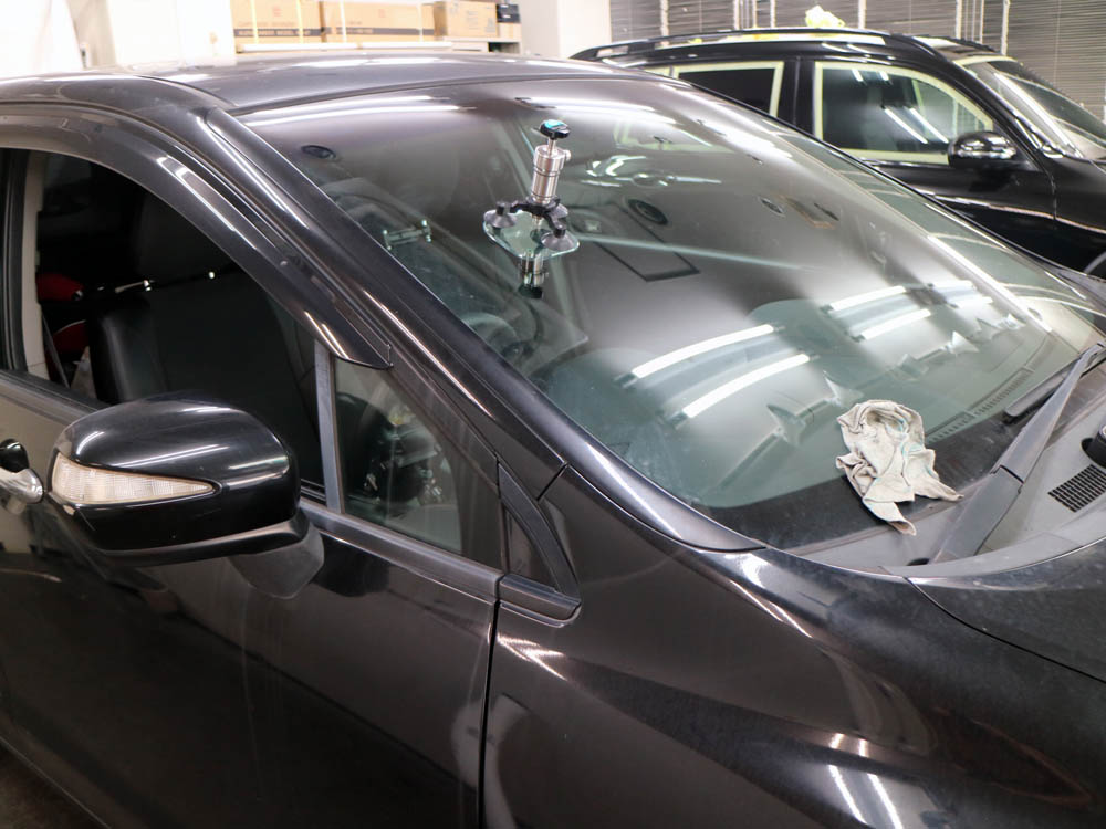 フロントガラスのワイパー傷・水垢を特殊研磨で一掃し、新品状態に復活させます。また同時施工で撥水加工(ガラスビューセイバー)がなんと半額!!