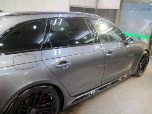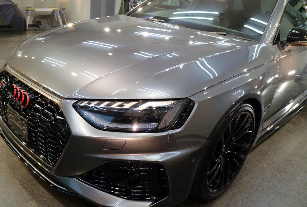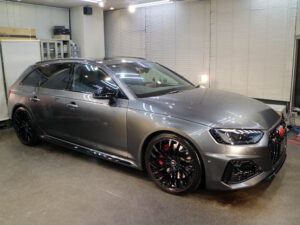 アウディRS4アバントさんのボディ磨き・コーティングおよびプロテクションフィルム施工が完了。