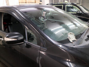 高速道路走行中に前車のはねた飛び石がフロントガラスに被弾!