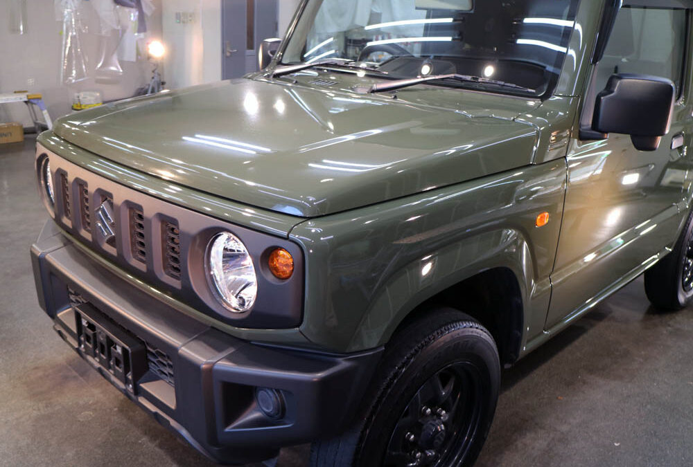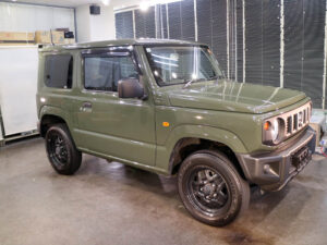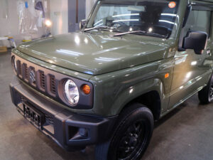 ジムニーさんのボディ磨き・コーティングおよびガラス撥水加工が完了。