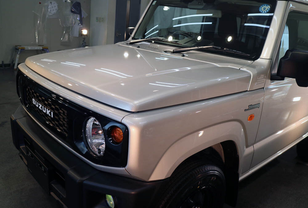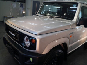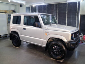 新車ジムニーさんのボディ磨き・コーティングおよびガラス撥水加工が完了。
