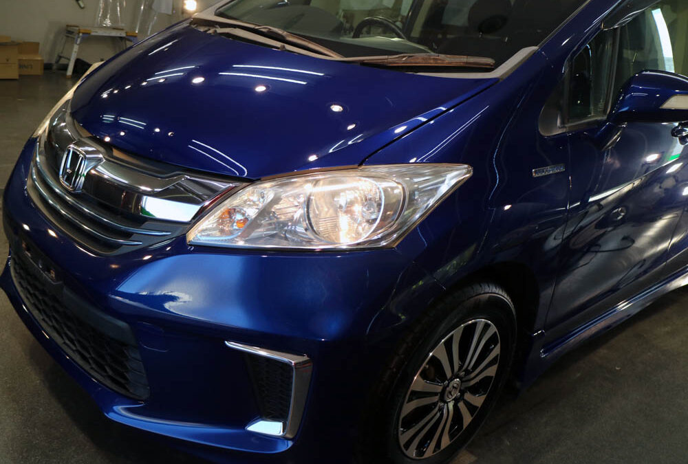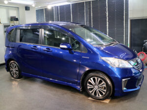 フリードさんのボディ磨き・コーティングおよびガラス撥水加工が完了。