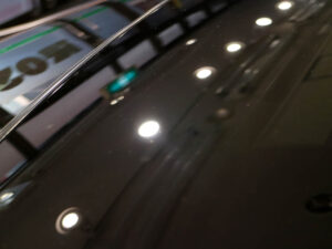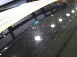 塗装面の強烈な鱗状痕は溶剤で何とか処理するも、ガラスは研磨で仕上げます。