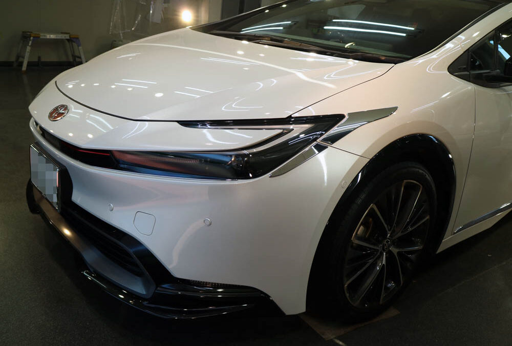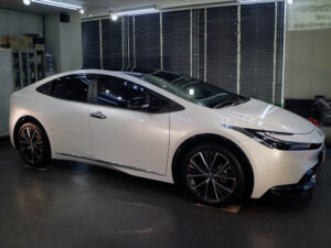 プリウスさんのボディ磨き・コーティングおよびガラス撥水加工が完了。