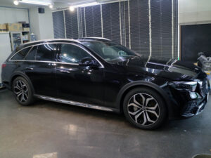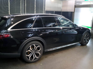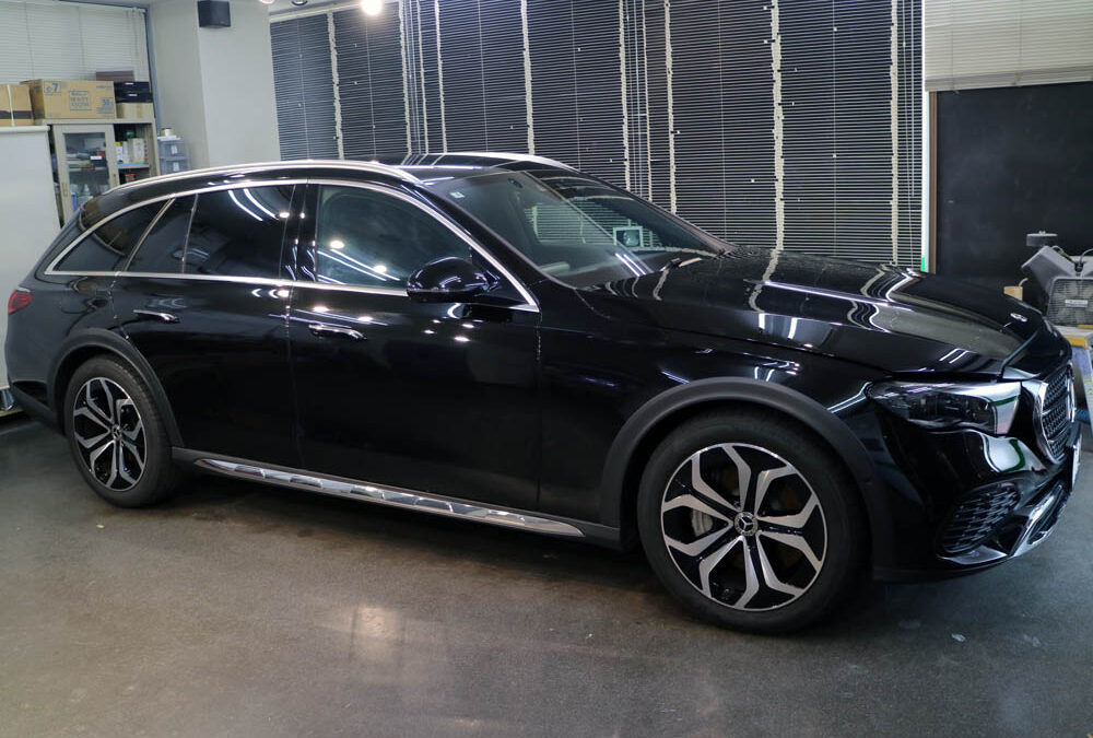 新車ベンツE220dさんのプロテクションフィルム施工、ウィンドフィルム施工およびガラス撥水加工が完了。