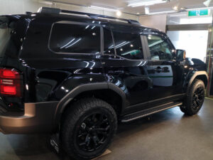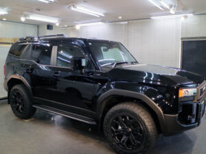 新車ランドクルーザー250さんのボディ磨き・コーティング、ホィールコーティングおよびガラス撥水加工が完了。
