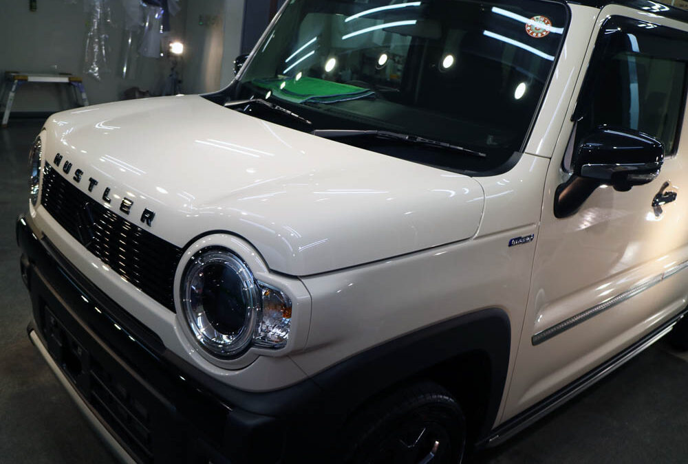 新車ハスラーさんのボディ磨き・コーティングおよびガラス撥水加工が完了。