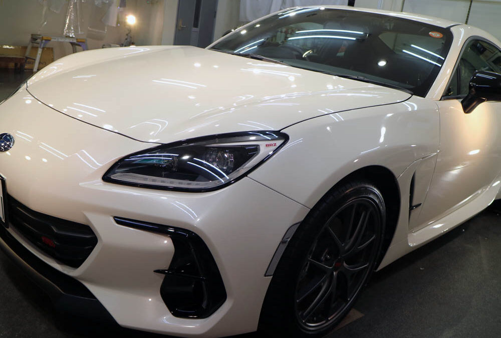 新車BRZさんのプロテクションフィルム施工、ボディ磨き・コーティングおよびガラス撥水加工が完了。