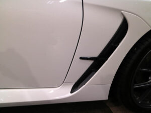 プロテクションフィルムの施工部位はボンネット・ヘッドライト・フェンダー・サイドスポイラー・ドアノブポケット・ドアエッジ・リアバンパーステップへのインストールでした。