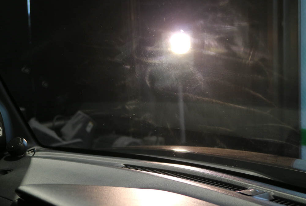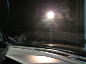 オーナー様はフロントガラスの鱗状被膜(水垢)を取ろうと手磨きを試みたところ、全く歯が立たず電動ポリッシャーのようなものでゴイゴイ磨いたとのことでした。
